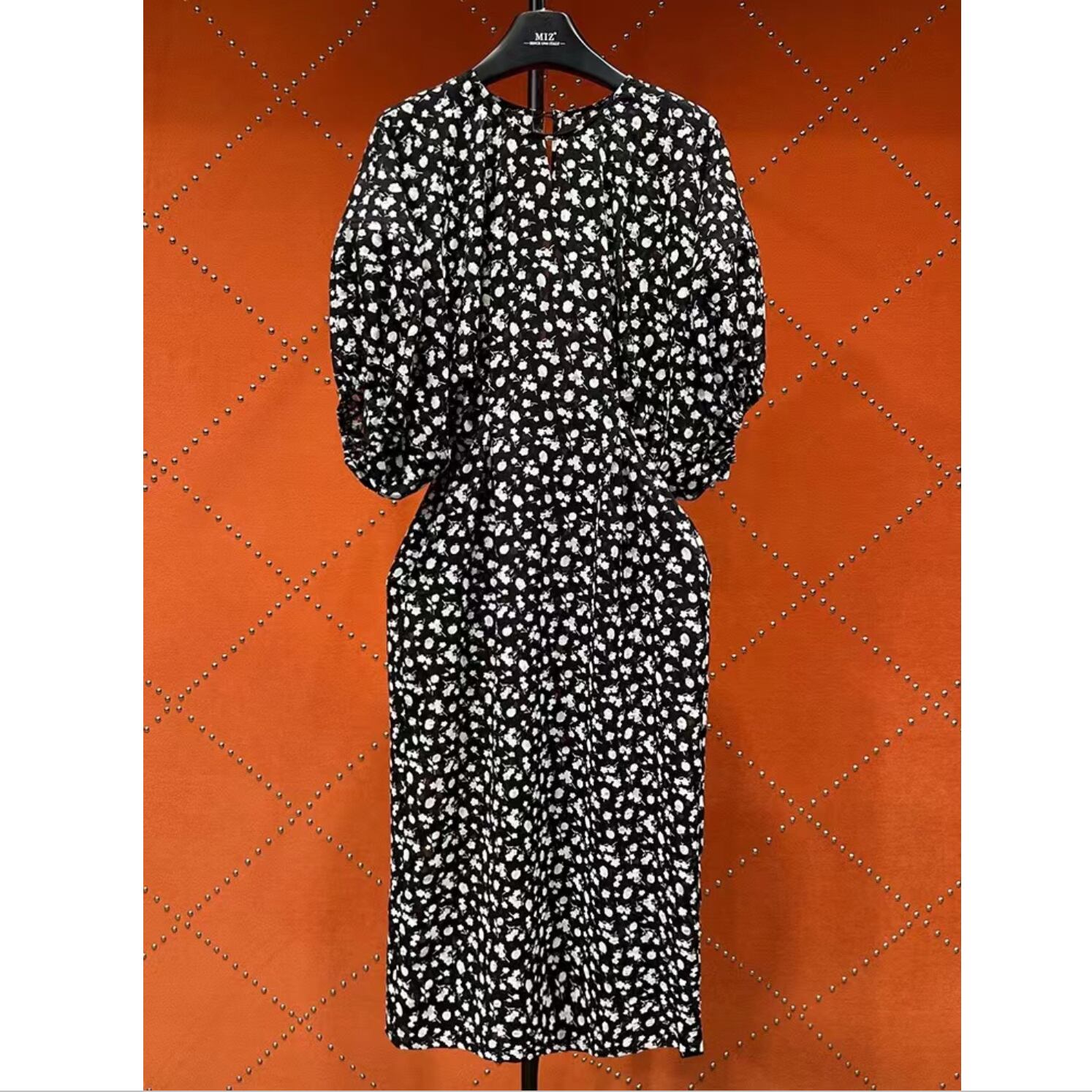 ウエストタックが施され女性らしいシルエットの細身のワンピース。
