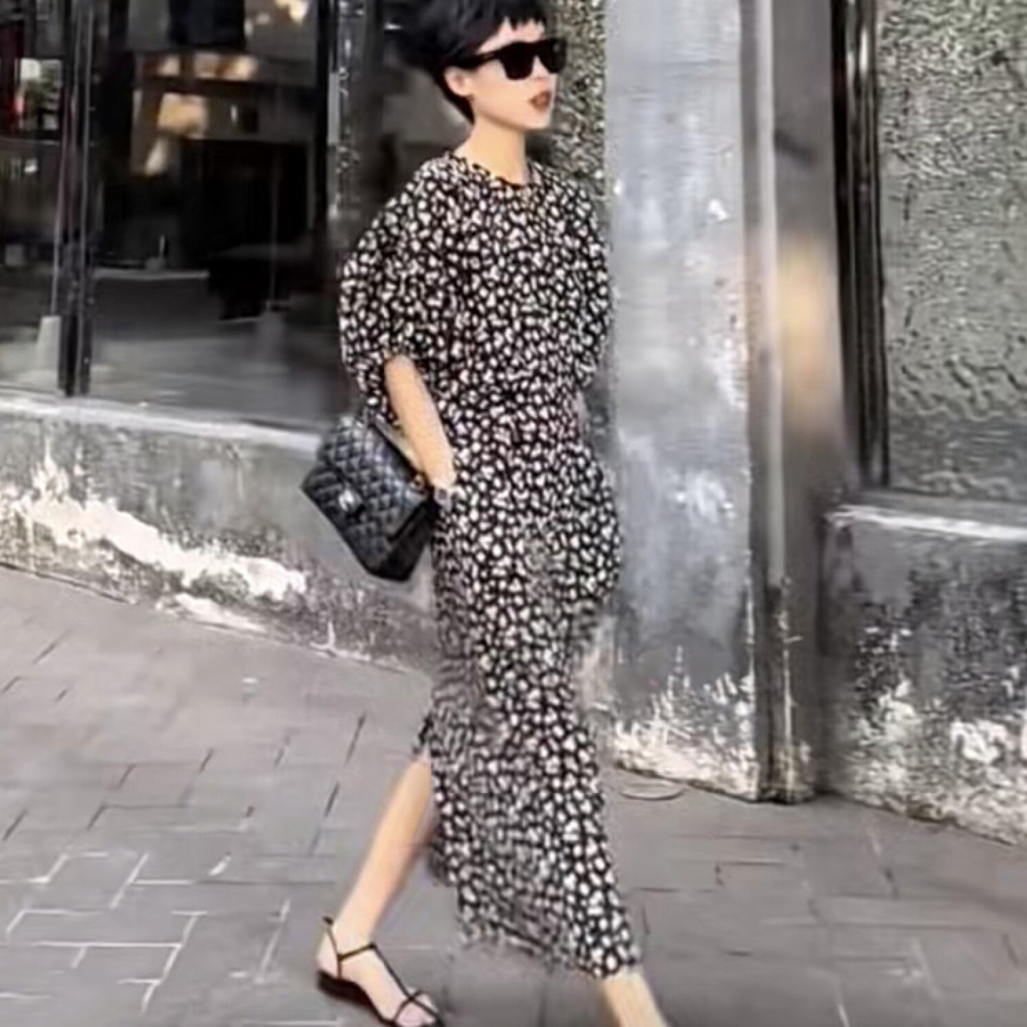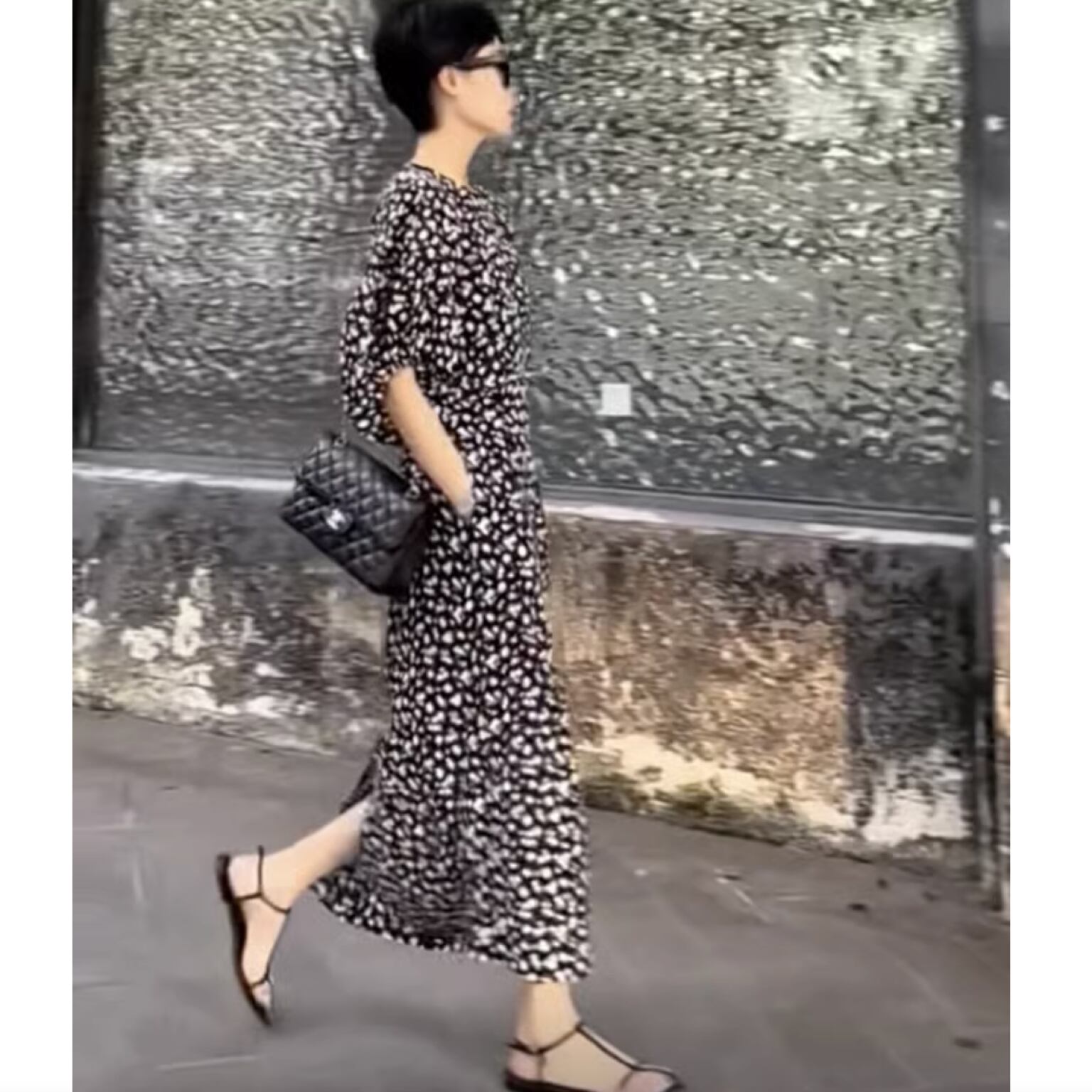 サラサラとした素材感でスリットの肌見せに抜け感があります。