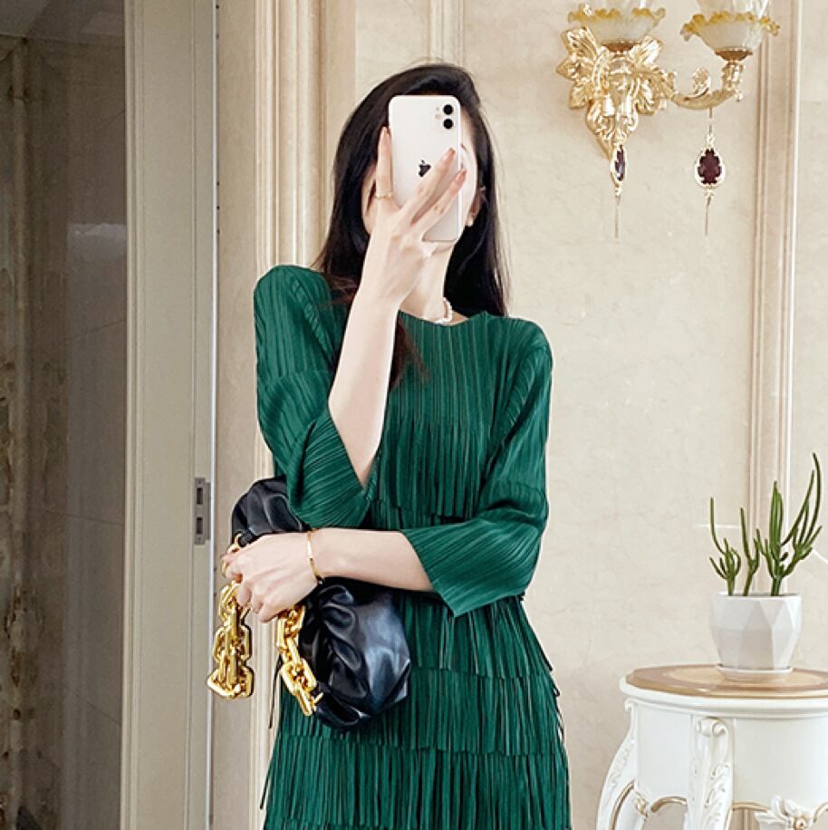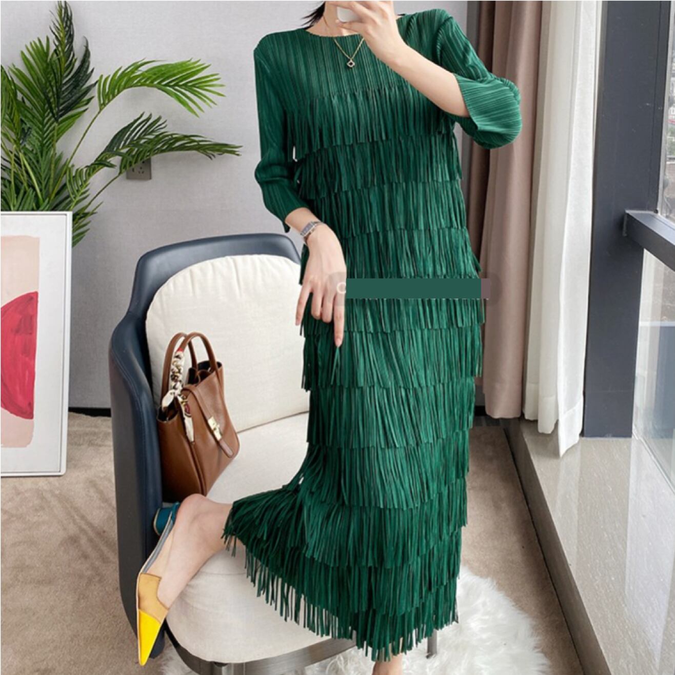 華やかなポップなカラー、揺れるフリンジがキュートなドレスはおしゃれ注目度抜群!!
